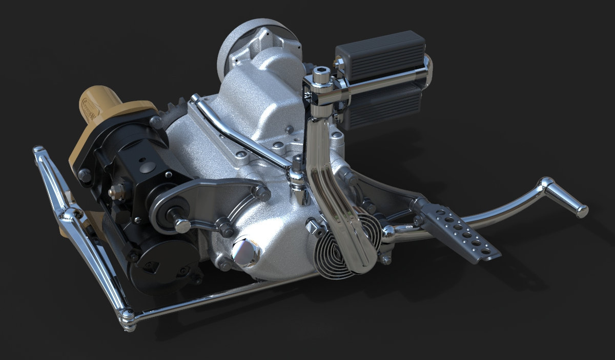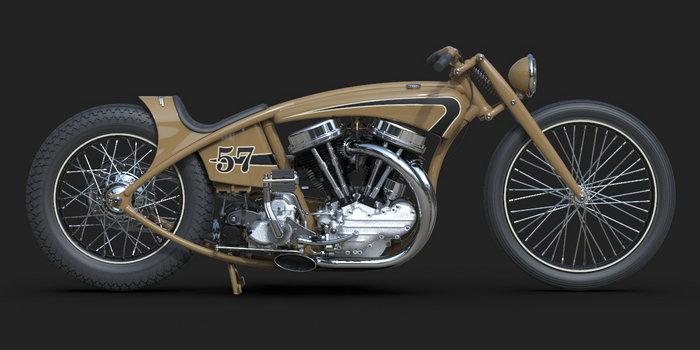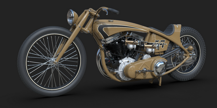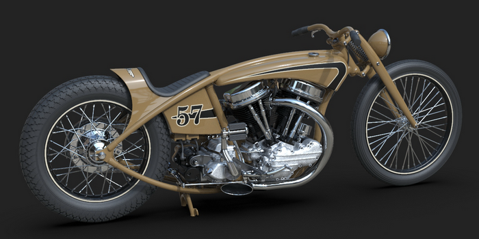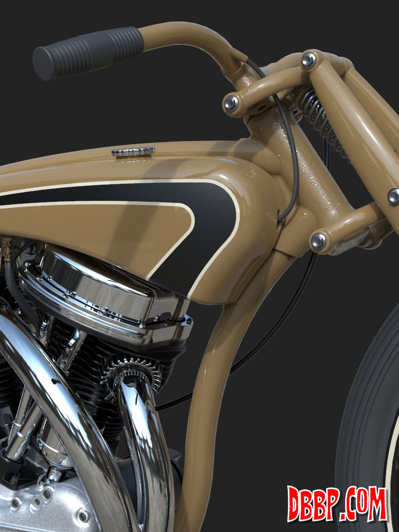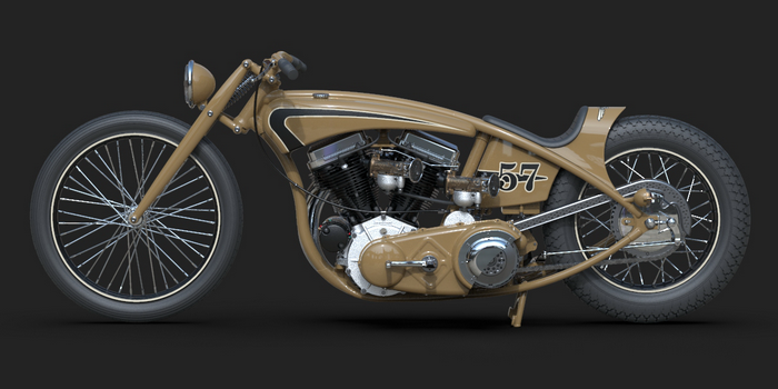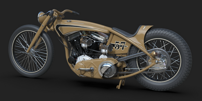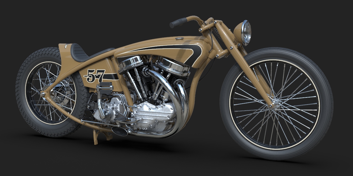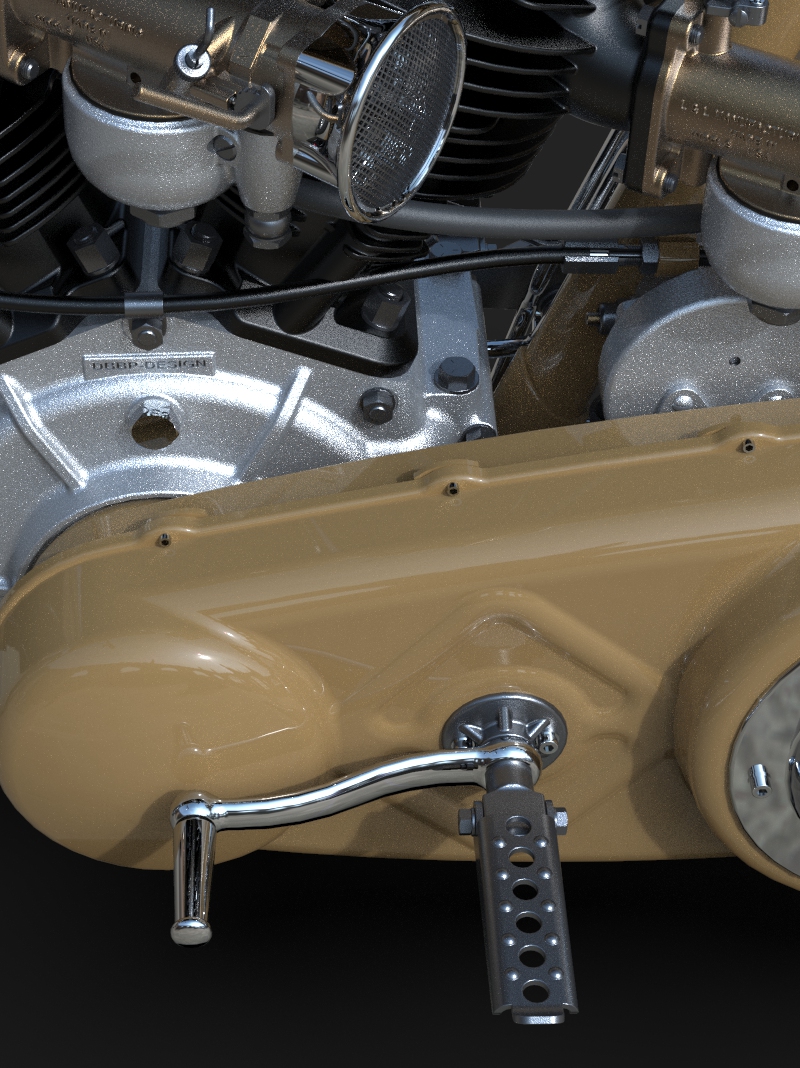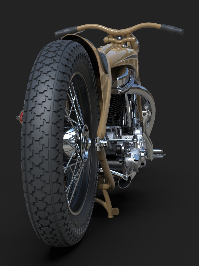 22 May 2023 The last few details were added, like taillight, chainguard and throttle cable. I am quite happy how this one turned out! Also added a simple animation I did myself and a much better one that was made by someone who actualy knows what he is doing, thanks Alex!! 24 April 2023 I added one of my-weld on clutch handles, the clutchcable, the shifter, a center- stand, the plug wires (coil hidden in/under fueltank) and even the generator wires 10 April 2023 Added the brake linkage from the Triumph rear drumbrake, through(!) the frametube, behind the transmission and to the midcontrol on the right side. Also added the footpegs and 5th transmission mount, and modified the kicker again.. 20 March 2023 I added the oillines, Antigravity 16-cell battery upsidedown in oil tank, changed the velocity stacks (making these in real life by the way) and modified the kickstarter so it is tucked in closer to the bike and a bit further back, to creat some legroom 27 February 2023 Modified exhaust, seat and rear "fender", added headlight and oiltank 5 February 2023 Added seat and "fender", Seats are tough to model in CAD! 15 January 2023 I modified the fueltank so that it has nice even gaps all around, then added some simple graphics, fuelcaps, fuelvalve and fuellines 30 December 2022 I completed the frame and started with the tank, also added the linkage between the carbs. The rear of the primary has been cut open for a bit more cornering angel and to show off the drilled clutch housing. I also added a "Cannonball" electric start kit, which is a product that I designed for W&W many years ago. 18 December 2022 Most of the frame is now complete, except for the top of the seatpost. I like a motor to be easily accesible so I made a removable frame section above the front head. The 2 tubes that go from the top of the seatpost to the rear axle are tapered to match the fork legs. Also added several new views. 10 December 2022 I completed the girder forks in the style of old Indians. with legs that are tapered from round to oval and then back to round. I also added the rear chain, always a lot of work... 28 November 2022 For the frame I will be using castings, with the tube sections between them slid in and then welded, much like the old stock Harley frames. The transmission has been lifted 1", and a rear wheel from a Triumph added. I started on the girder forks and added short velocity stacks on the Linkert carbs. I changed the pipes so they are tucked in more. Also added one of my Wavebars. It has been a while since I designed a bike just for fun and I am really enjoying myself! 14 November 2022 Started this project with a Panhead engine, with modified heads to accept dual carbs and a Vincent style exhaust. Then added a primary and a transmission, plus the wheel locations. This is enough to determine the steering angle and trail, next week I start with the frame!