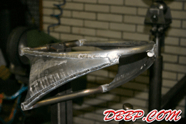 Modifying a 1979 FLH 4-speed frame to squeeze in an Evo engine,